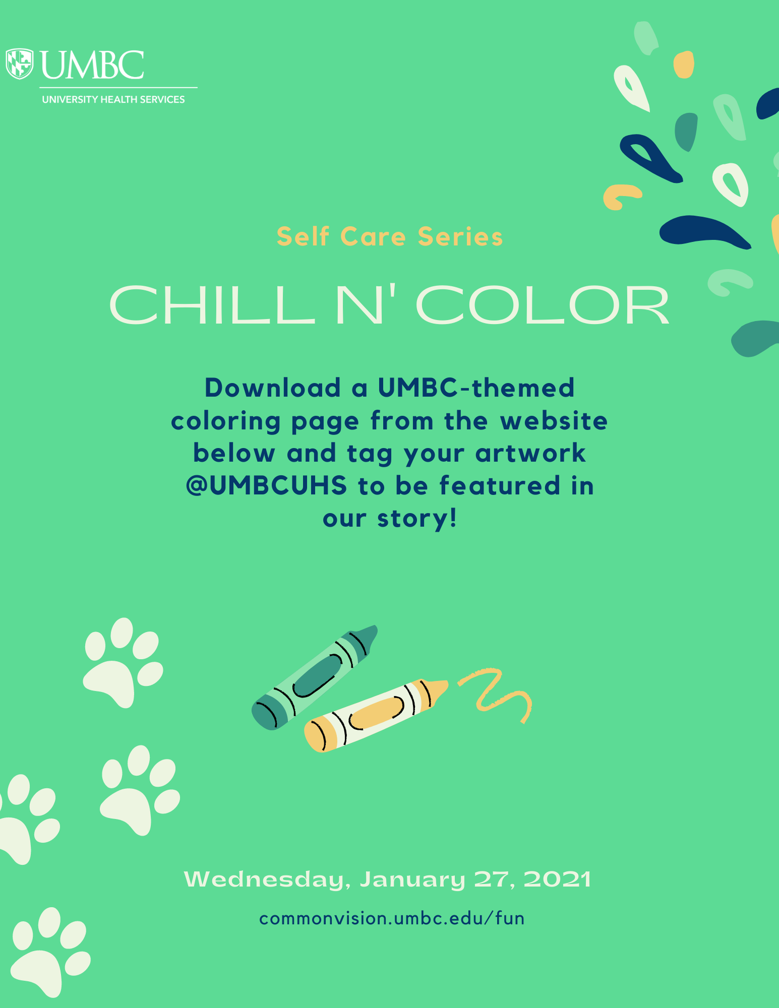 Download a UMBC-themed coloring page here and get to coloring! Tag your artwork @umbcuhs to be featured in our story!