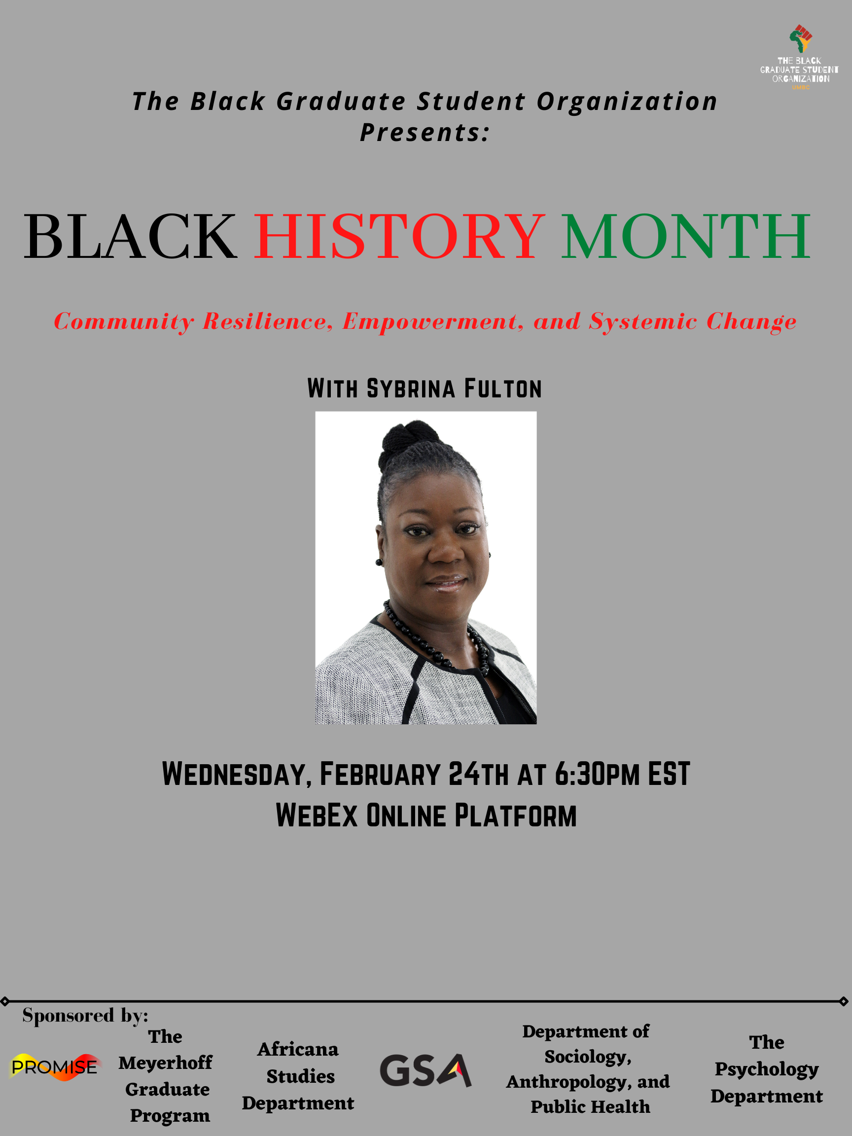 On Wednesday, February 24th at 6:30 pm EST, we will be having our virtual Black History Month event. The theme is "Community Resilience, Empowerment, and Systemic Change." We are honored that our keynote speaker will be Sybrina Fulton, the mother of Trayvon Martin. The flyer is attached to this email (a HUGE thank you to our sponsors).