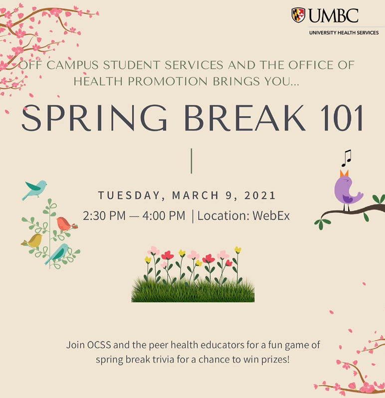 Join OCSS and the peer health educators for spring break and general wellness trivia for a chance to win prizes!